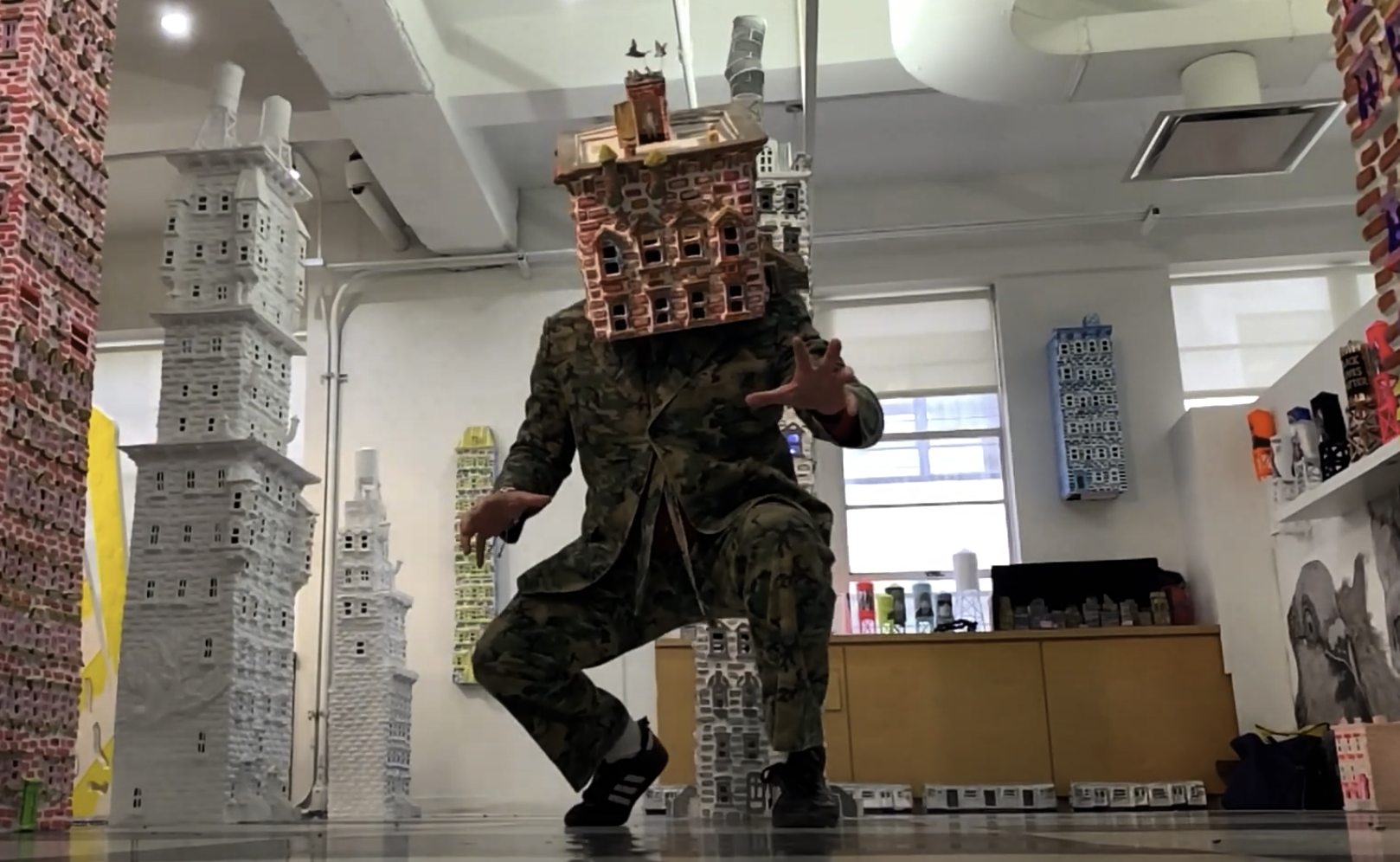 New York I Love You But You’re Bringing Me Down is comprised of over 50 papier mache sculptures: buildings, mailboxes, subways cars, taxi cabs and water towers. Each element is adorned with vivid colors and images. The viewer can even peer into windows to reveal interior micro-installations which include colored lights and other kinetic surprises.